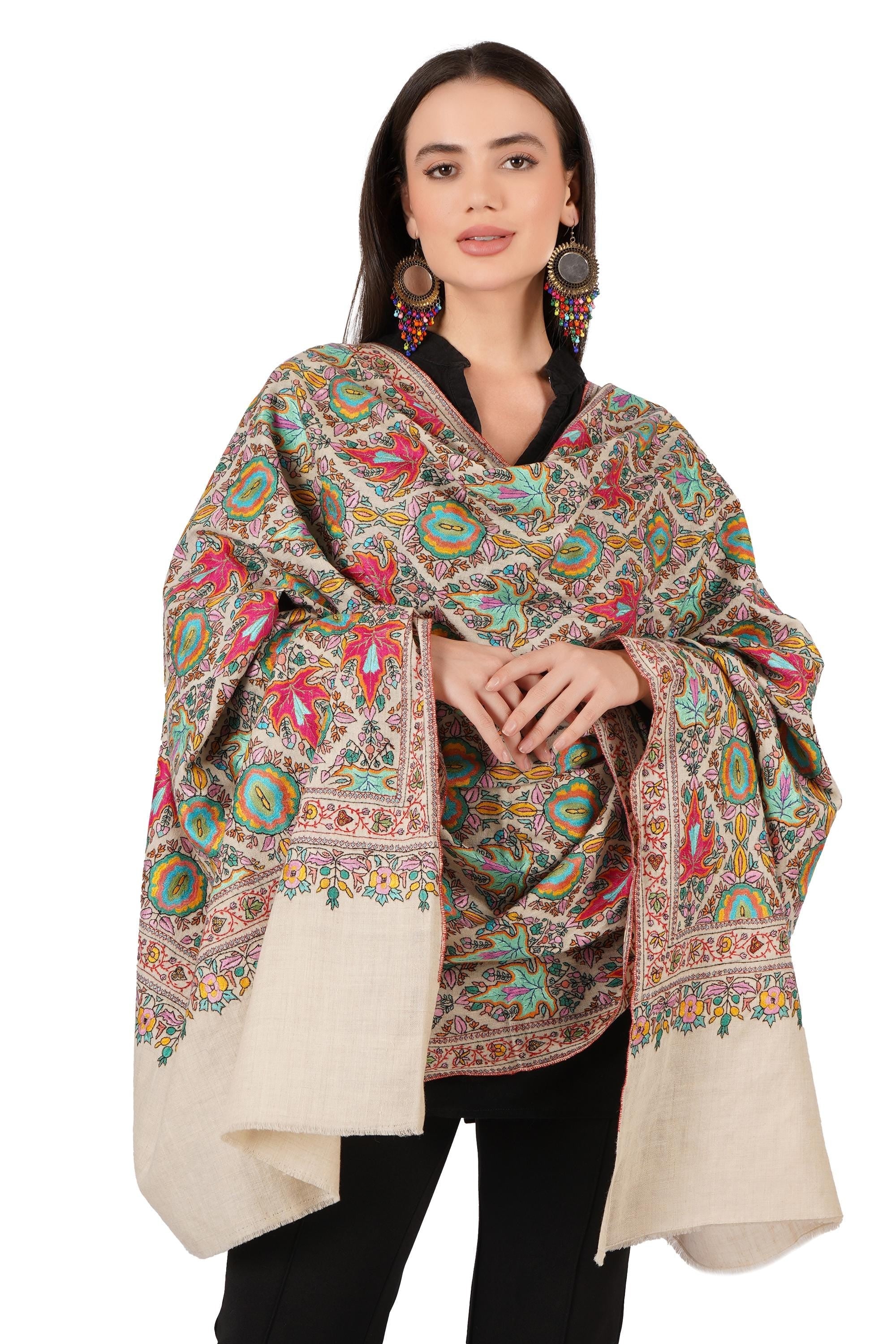 Pure Pashmina sozni handwork Embroidery Shawl, Handmade Undyed Natural White, Paper Mache Embroidery, Sozni Hand EmbroideryPure Pashmina sozni handwork Embroidery Shawl, Handmade Undyed Natural White, Paper Mache Embroidery, Sozni Hand Embroidery- Regular price
